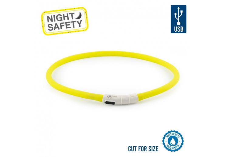-Simply clips around your dog's neck for instant illumination for 500 metres, making your dog unmissable