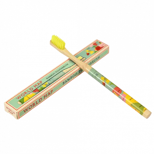 Our World Map bamboo toothbrush is a great eco-friendly alternative for keeping your teeth clean and healthy! Its medium soft nylon bristles are BPA-free and the handle is 100% biodegradable bamboo.