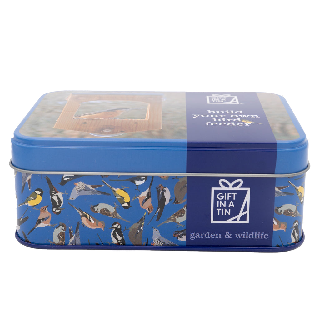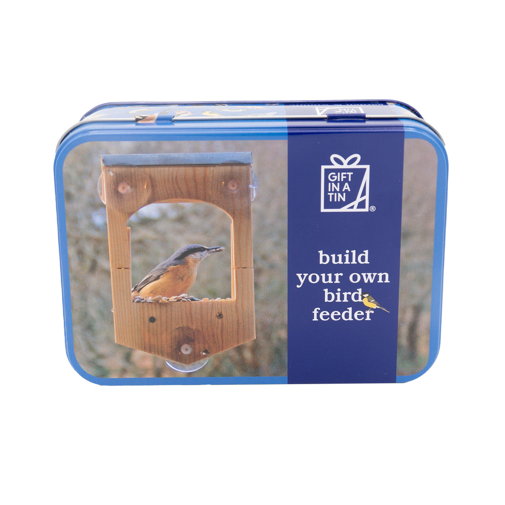 Great fun for all kids and adults! Assemble the wooden parts in this simple kit to build your own window bird feeder, use the suckers to attach to the outside of a window so you can feed and view the birds from your own home. Use the tin to store seed. Recommended Age 6+