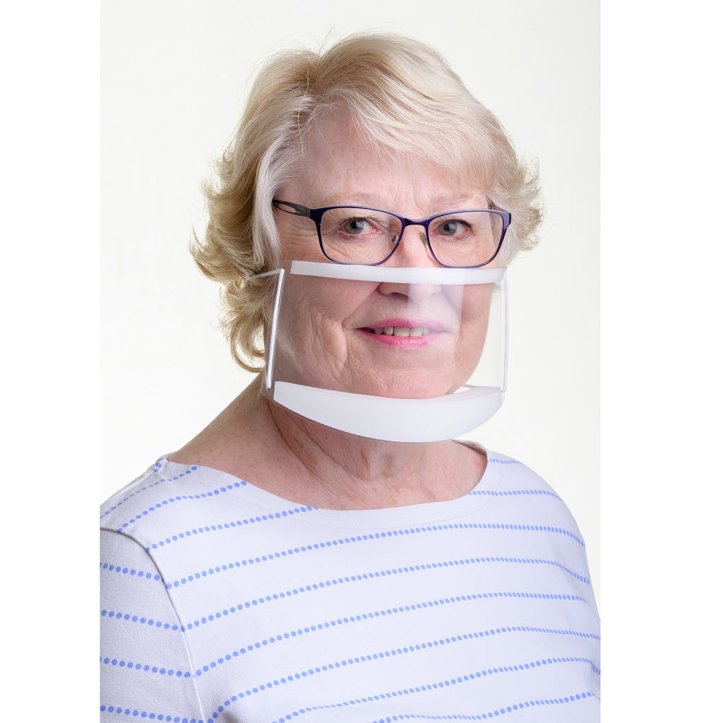 Designed for comfort and breathability, ClearMask™ is a fully transparent face covering which blocks the transfer of fluids, aerosols and sprays using a clear plastic barrier.