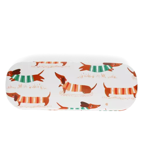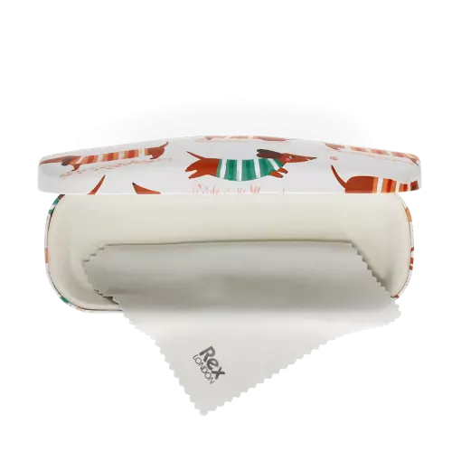Keep your glasses (or sunglasses) safe and spotless with this protective case. Featuring our adorable sausage dog design, the soft microfibre lining protects your lenses from scratches and the matching cloth ensures they stay clean and clear, wherever you are.