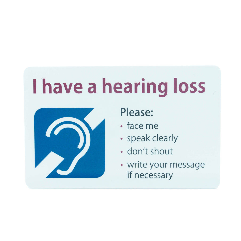 Pack size: 1 x 'I have hearing loss' communication card. Card size: 86mm x 54mm