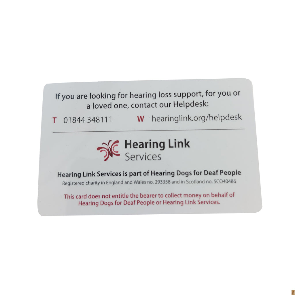 - Credit card-sized BioPVC™ card displaying message 'I have a hearing loss'