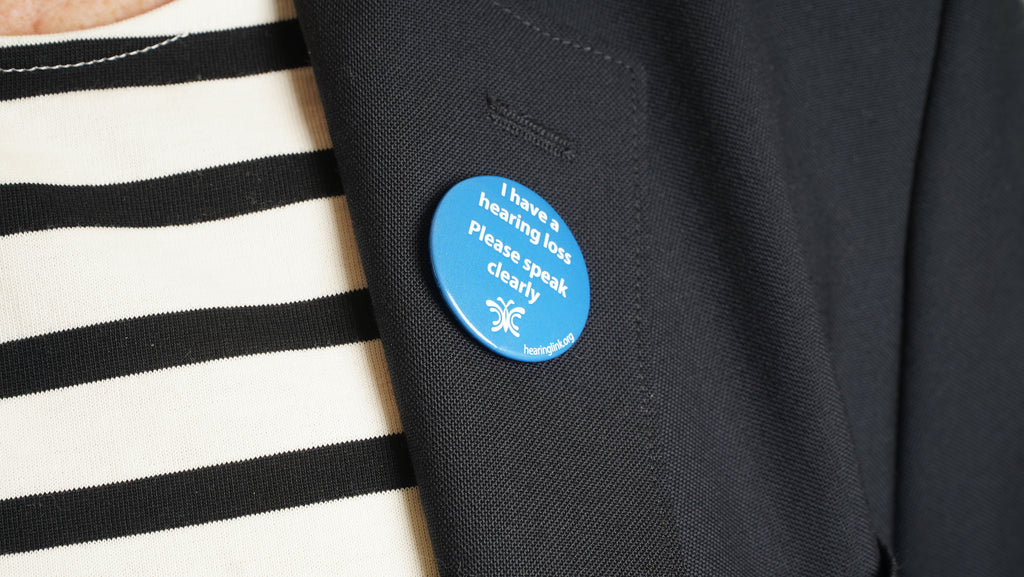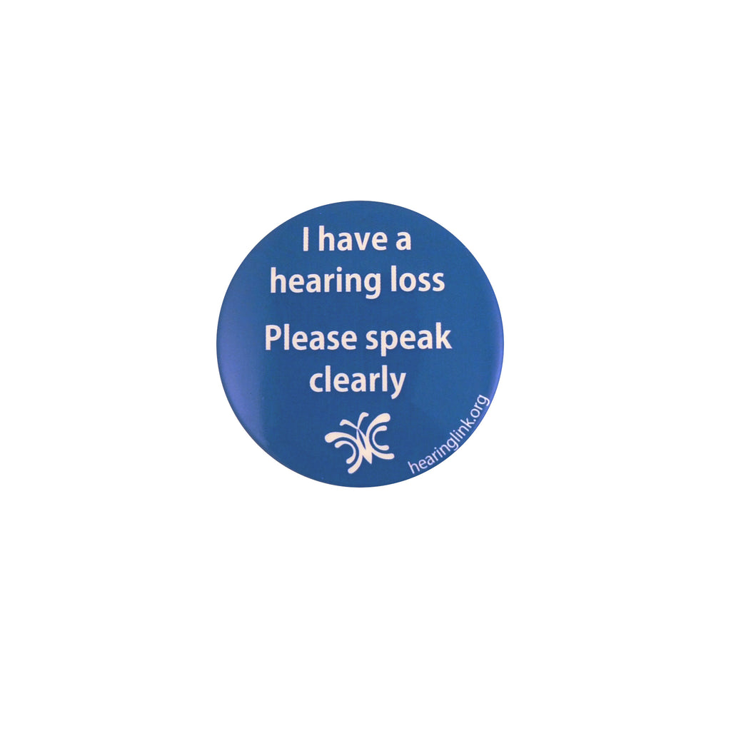 'I have hearing loss - please speak clearly' pin badge