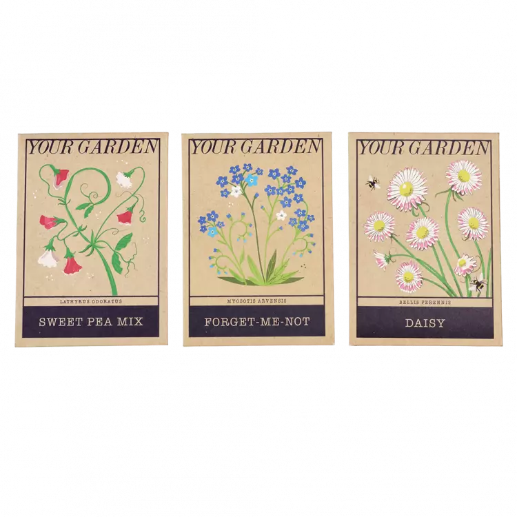 - Seeds available include sweet peas, forget-me-nots and daisies