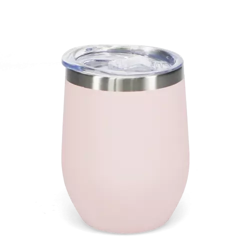 Stay refreshed in style with this rubber coated travel cup in pink. Designed for enjoying drinks on the go. It also features a plastic lid and sliding cover for direct sipping or use of straws.