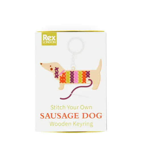 Create a charming handmade gift for yourself or loved ones with this stitch your own sausage dog keyring. Featuring a wooden keyring base with a pre-punched sausage dog design, this easy-to-use kit includes colourful thread and a small needle, perfect for beginners in needlecraft.