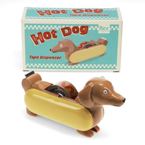 Never lose your tape again with this hot dog dispenser. Featuring a hilarious design of a sausage dog in a bun (complete with ketchup), it adds a smile to any office, desk or school day.